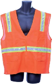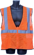 Orange Safety Vest w/2" Silver, Mesh Front & Back & Zipper - |