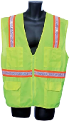 Lime Safety Vest, 1" White Reflector on 2" Orange Fluorescent, |
