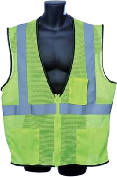 Green Safety Vest w/2" Silver, Mesh Front & Back & Zipper - |
